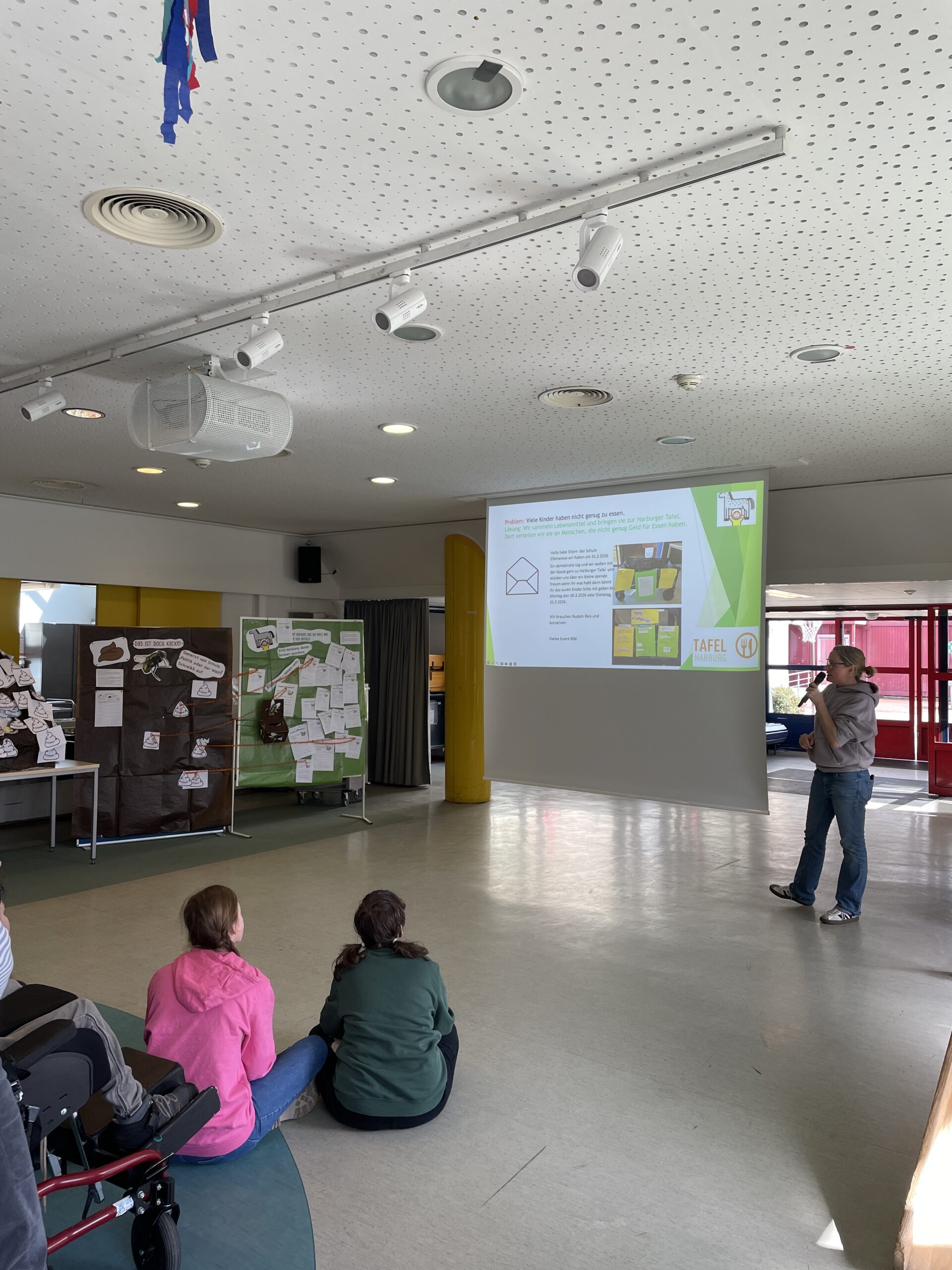 Gestern haben sich erneut alle SuS der Schule Elfenwiese in der Pausenhalle getroffen. Das Thema des Demokratietages in diesem Jahr ist „Wir machen uns die Welt, wie sie uns gefällt.“